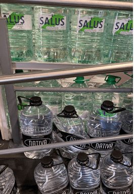Bidones apilados esperando a ser comprados y bebidos para luego ser tirados en un contenedor. Uno está abollado, quizás lo devuelvan, quizás nadie lo elija, . ¿Qué se hace cuando algo está roto y defectuoso? ¿Quién elegiría algo así?