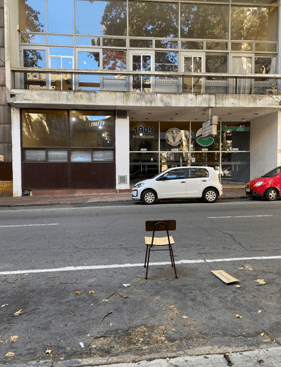 Una silla, común y corriente esperando sobre la calle. Esta vez no es una persona la que espera en ella. Cuando siempre un asiento está siendo ocupado, ya sea en el ómnibus, en el salón de la facultad, en las salas de hospitales, el cine. ¿Qué simboliza una silla? ¿Qué canción puede musicalizar esta imagen? de seguro para cada uno de ustedes se les ocurrirá una canción diferente, sería lindo saberlo.