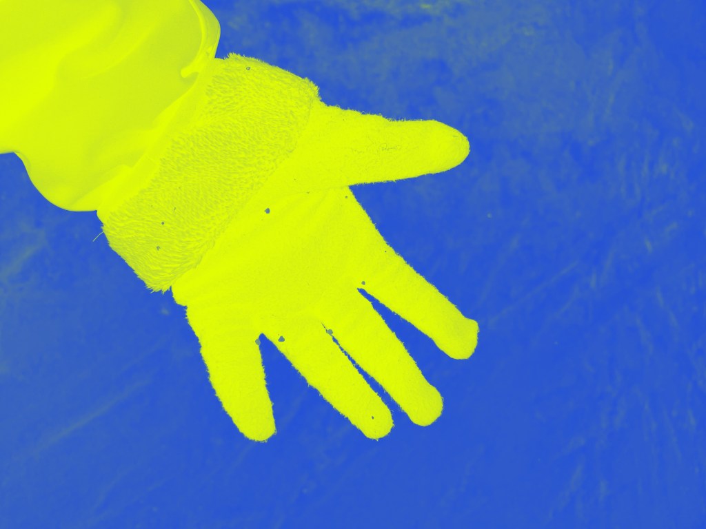 aún abajo de los guantes de polar